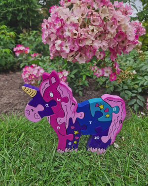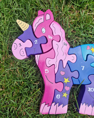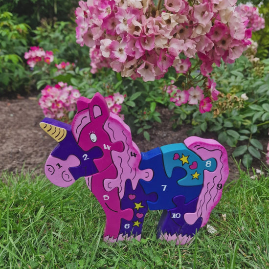 This PRETTY in PINK Unicorn Number Jigsaw Puzzle is a beautiful 1-10 piece puzzle encourage early years learning and play.